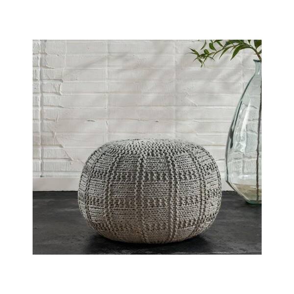 Beautiful Modern Refreshing Grey Cozy Knit Weave Handcrafted Pouf on Throw Blanket for Living Room and Bedroom