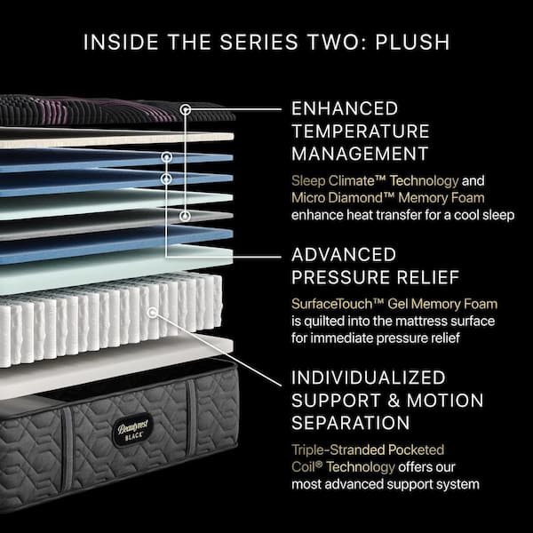 Black Series 2 Twin XL Plush 15.25 in. Low Profile Mattress Set