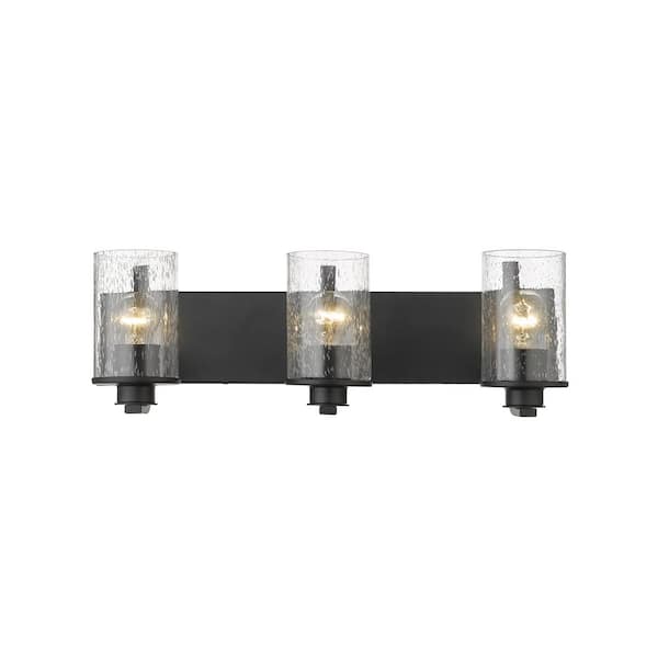Beckett 23 in. 3-Light Matte Black Vanity Light with Glass Shade
