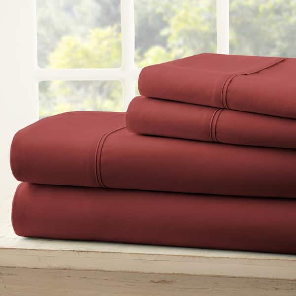 4-Piece Burgundy Solid Microfiber Full Sheet Set