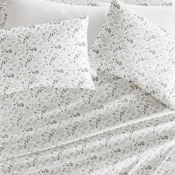 4-Piece Eucalyptus Tossed Foliage Microfiber Poly Sheet Set in Cal King