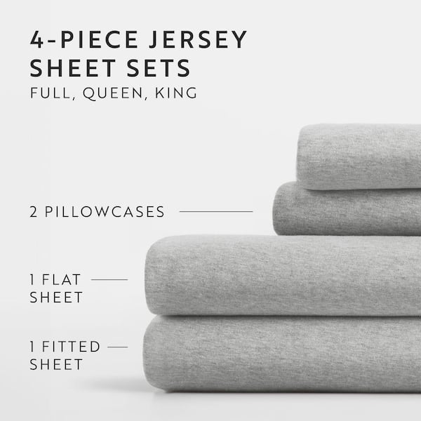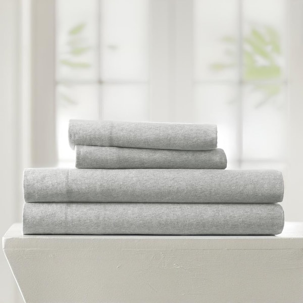 4-Piece Light Gray 100% Cotton Ultra Soft Jersey Knit King Sheet Set