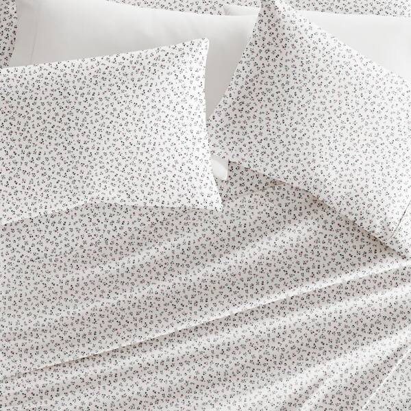 4-Piece Mauve Ditsy Floral Microfiber Poly Patterned Sheet Set in Cal King