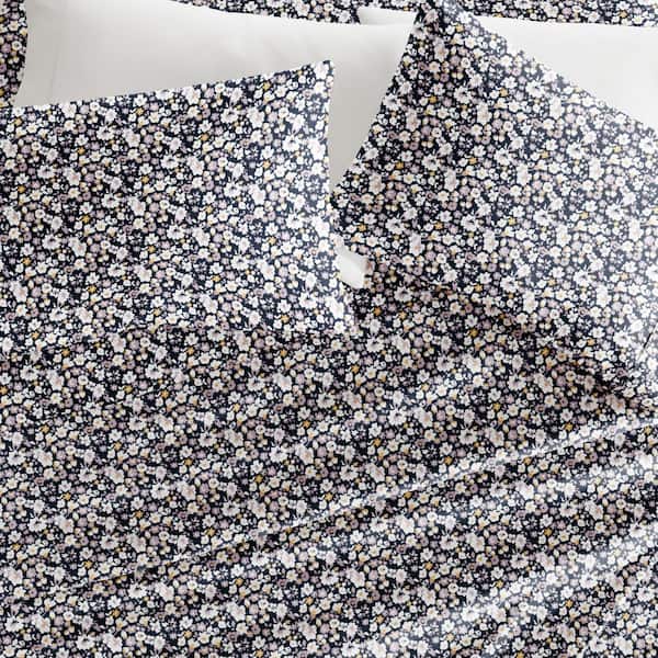 4-Piece Navy Floral Dream Microfiber Poly Patterned Sheet Set in King