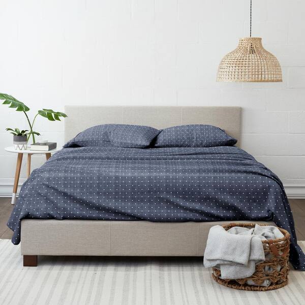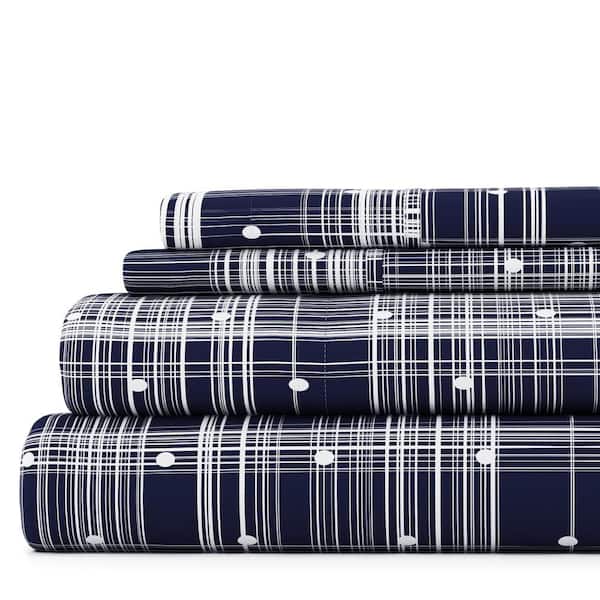 4-Piece Navy Geometric Microfiber King Sheet Set