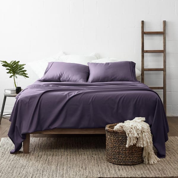 4-Piece Purple Geometric Microfiber Twin Sheet Set