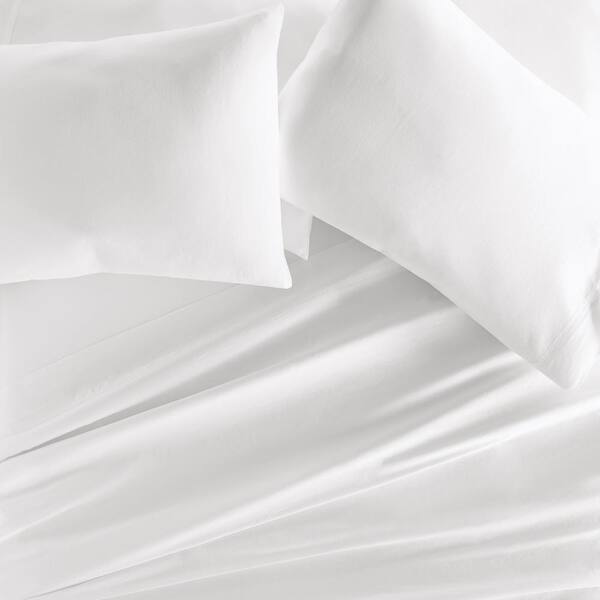 4-Piece White 300 Thread Count Solid Sheet Set in Queen
