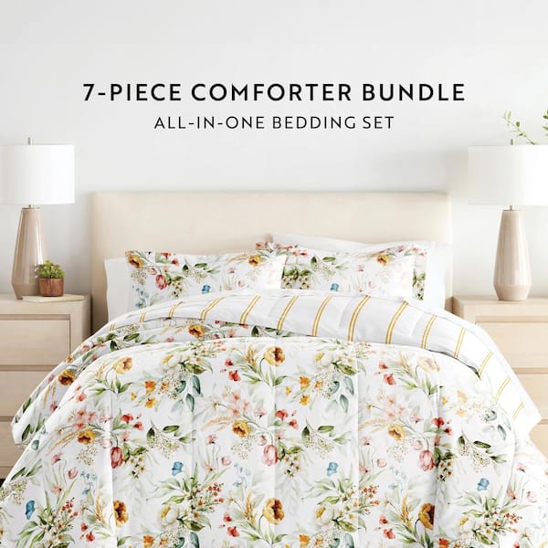 5-Piece Chintz Floral Stripe Clay Pattern Comforter Twin XL Microfiber Bedding Bundle
