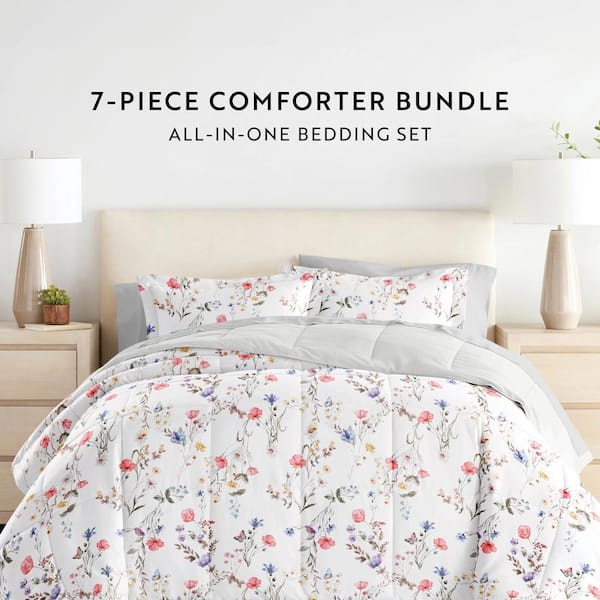 5-Piece Meadow Floral Stripe Pink Pattern Comforter Twin Microfiber Bedding Bundle