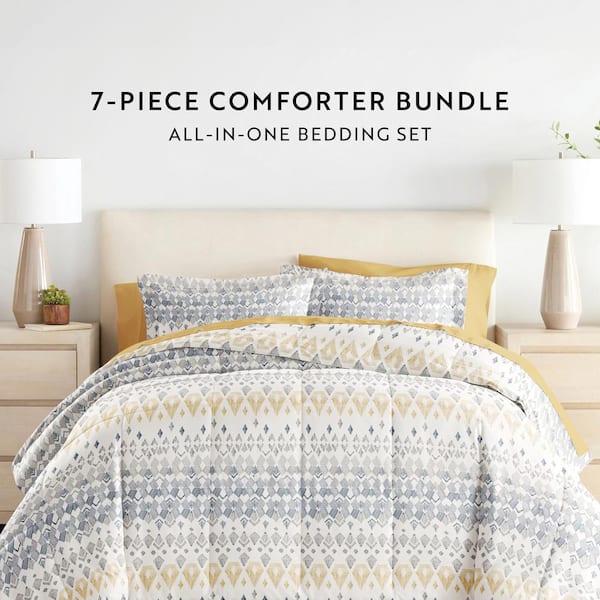 7-Piece Mayan Stamp Gray Pattern Comforter Full Microfiber Bedding Bundle