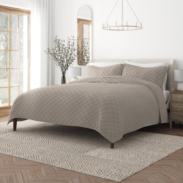 All Season 3-Pcs Diamond Stitch Microfiber Quilt Set with Shams