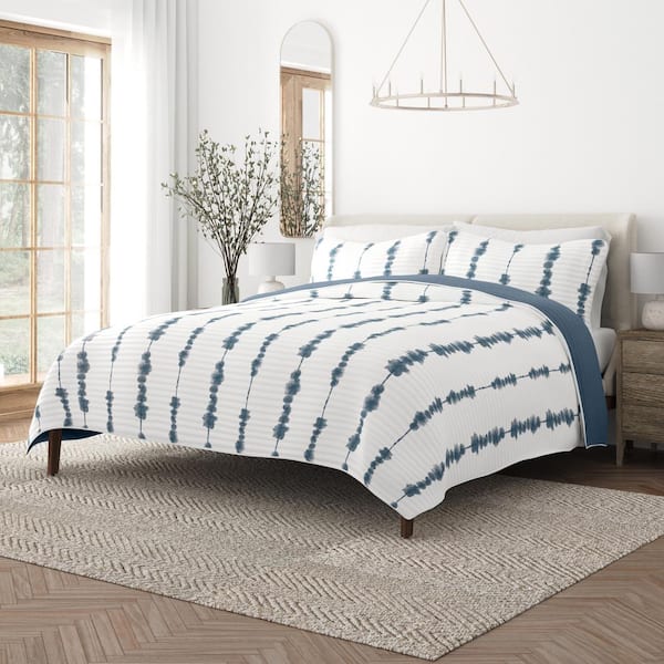 All Season 3-Pcs Shibori Reversible Microfiber Quilt Set with Shams