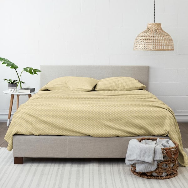 Home Collection 4-Piece Yellow Geometric Microfiber Full Sheet Set