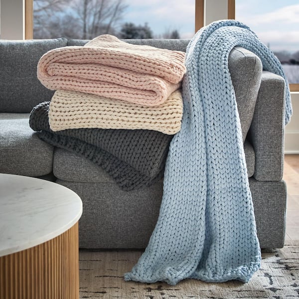 Light Blue Chunky Knit Acrylic Throw Blanket