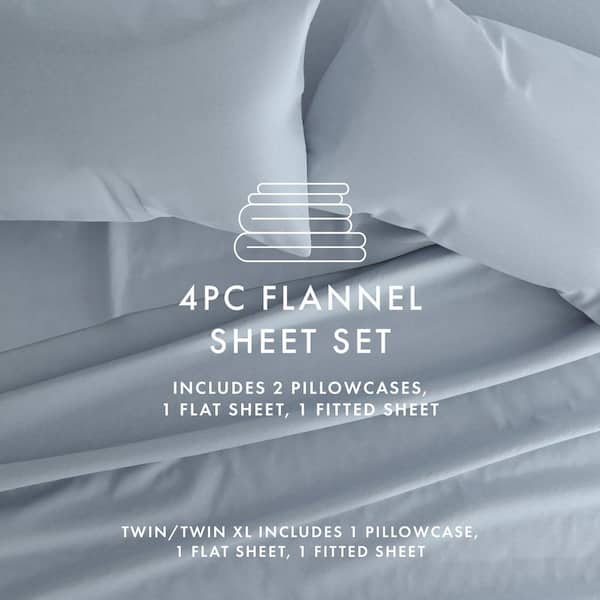 Premium 4-Piece Light Navy Ultra Soft Flannel King Sheet Set
