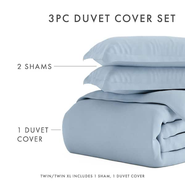 Premium Ultra Soft Light Blue Duvet Cover Set Full/Queen Microfiber 3-Piece Duvet Cover Set