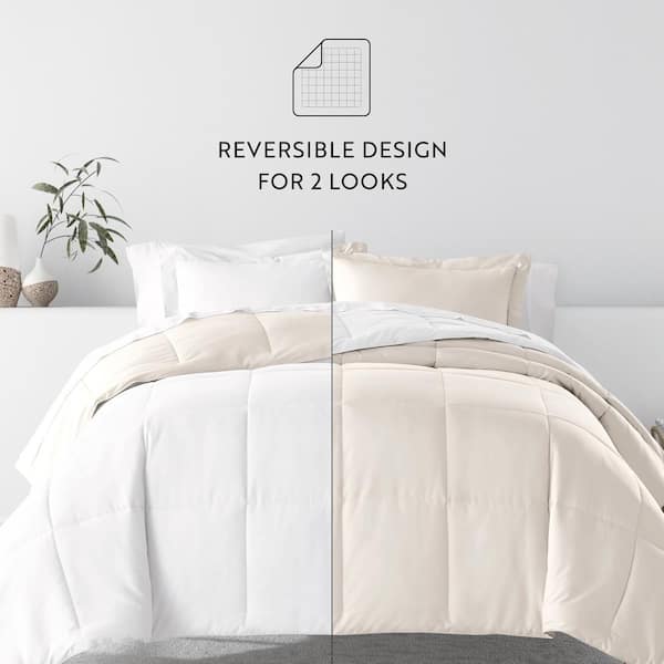 White and Ivory Microfiber Down Alternative Full / Queen Reversible Comforter Set