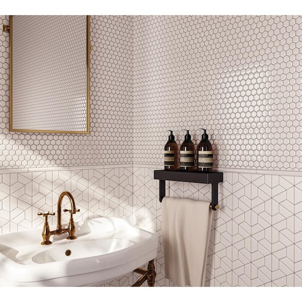 Sample-Le Cafe White 4 in. x 5 in. Hexagon Gloss Porcelain Mosaic Tile