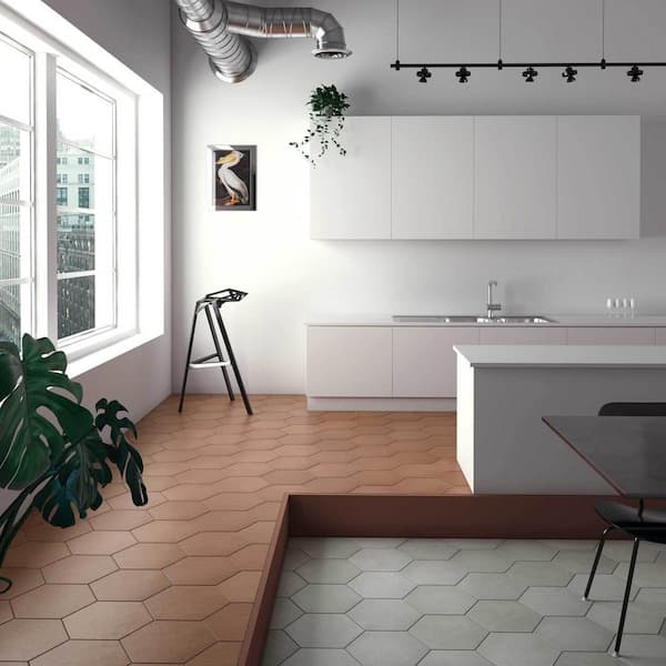 Sample-Makoto Hexagon 4 in. x 5 in. Matte Umi Terracotta Porcelain Floor Tile