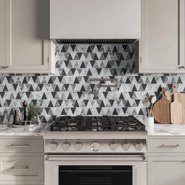 Sample-Modni Triangular 4 in. x 5 in. Honed Cool Blend Marble Mosaic Tile