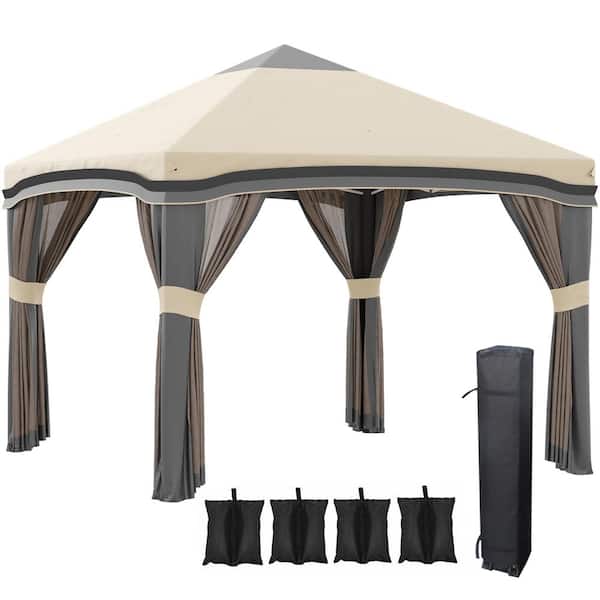 Beige 10 ft. x 10 ft. Instant Pop Up Canopy Tent,Patio Gazebo with Netting,Wheeled Carry Bag and 4-Sand Bags for Garden