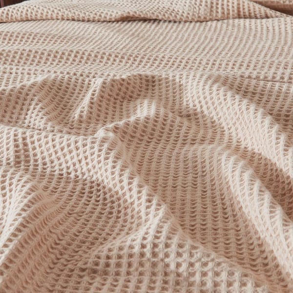 Beige 100% Cotton Full/Queen Lightweight Waffle Weave Blanket