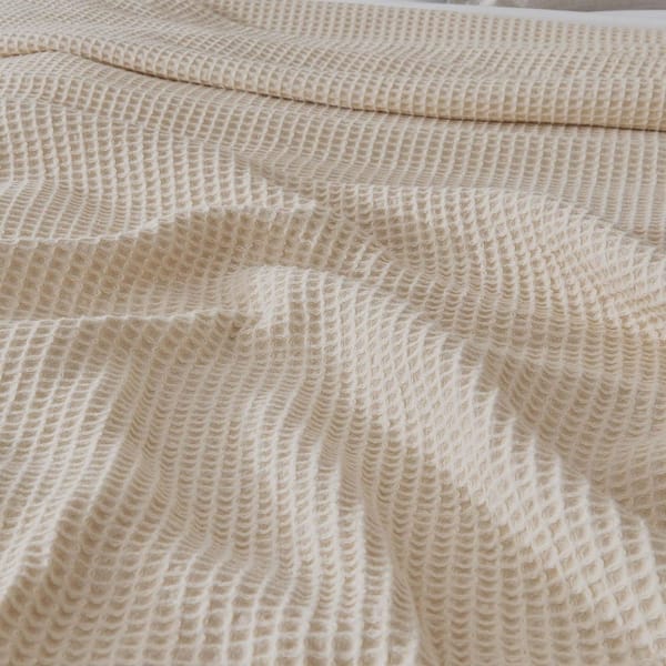 Beige 100% Cotton Twin Lightweight Waffle Weave Blanket