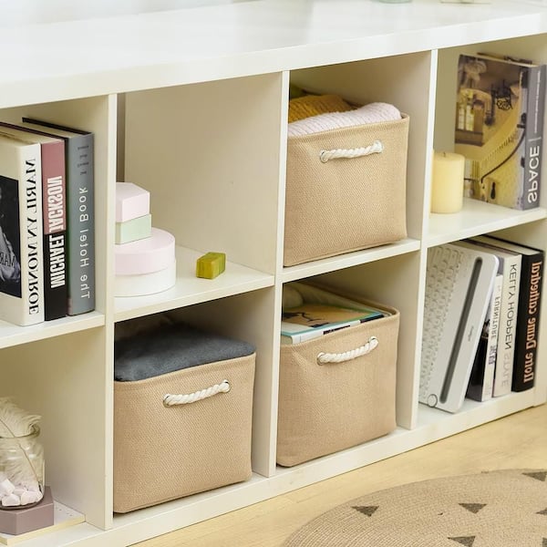 Beige 15.7 in. x 8.3 in. Linen Decorative Basket Set of 3 with Handles