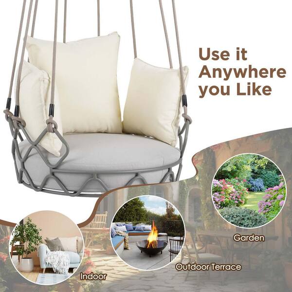 Beige 2.8 ft. Hammock Chair with UV Resistant Cushions, Hanging Rope Swing Chair for Bedroom, Patio, Balcony, Garden