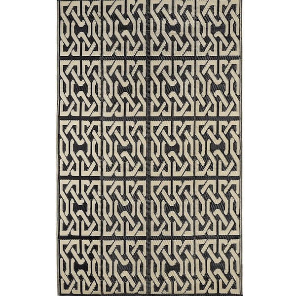 Beige 5 ft. x 8 ft. Modern Geometric Plastic Indoor/Outdoor Area Rug