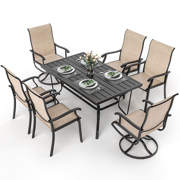 Beige 7-Piece Metal Outdoor Patio Dining Set with 6 Textilene Chairs and Rectangle Table