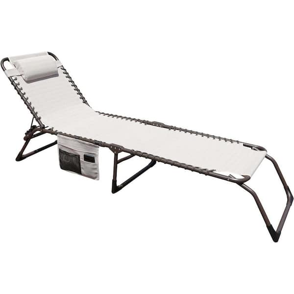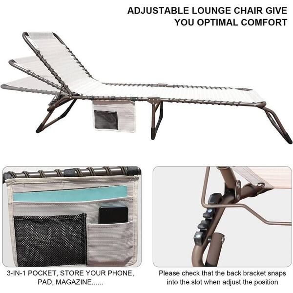 Beige Adjustable Outdoor Recliner Chaise Lounge with Detachable Pocket and Pillow for Beach (1 Piece)