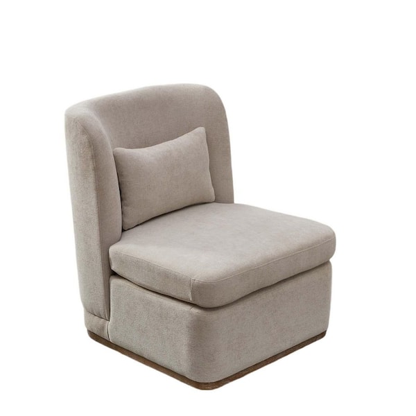 Beige Chenille 360° Swivel Chair Modern Upholstered Accent Chair Cozy Armless Single Sofa Chair