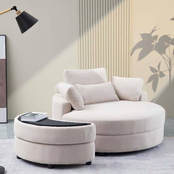 Beige Fabric Arm Chair Large round chair with storage linen fabric for living room hotel with cushions