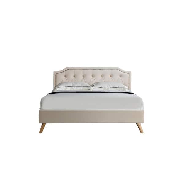 Beige Full Size Fabric Platform Bed Frame