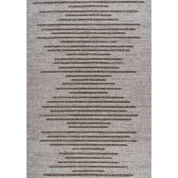 Beige Polypropylene 4 ft. x 6 ft. Stripe Geometric Indoor/Outdoor Area Rug