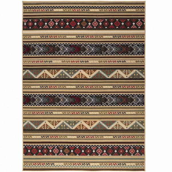 Beige Polypropylene 6 ft. 7 in. x 9 ft. Geometric Indoor Area Rug