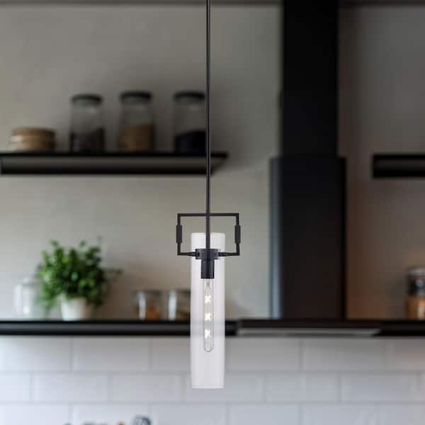 1-Light Black Mini Pendant Light Fixture with Clear Glass Shade