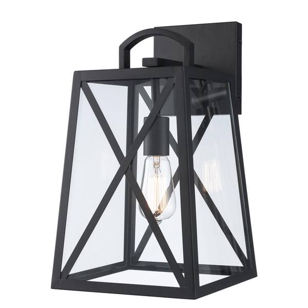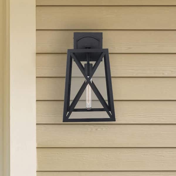 1 Light Black Outdoor Wall Light Fixture with Clear Glass