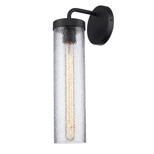 1 Light Black Outdoor Wall Light Fixture with Clear Water Glass Cylinder Shade