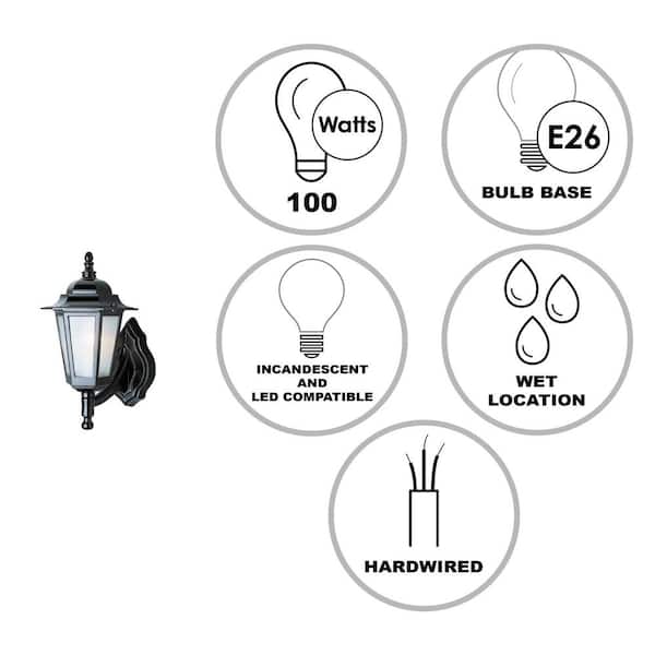 Alexander 1-Light Black Coach Outdoor Wall Light Fixture with Frosted Glass