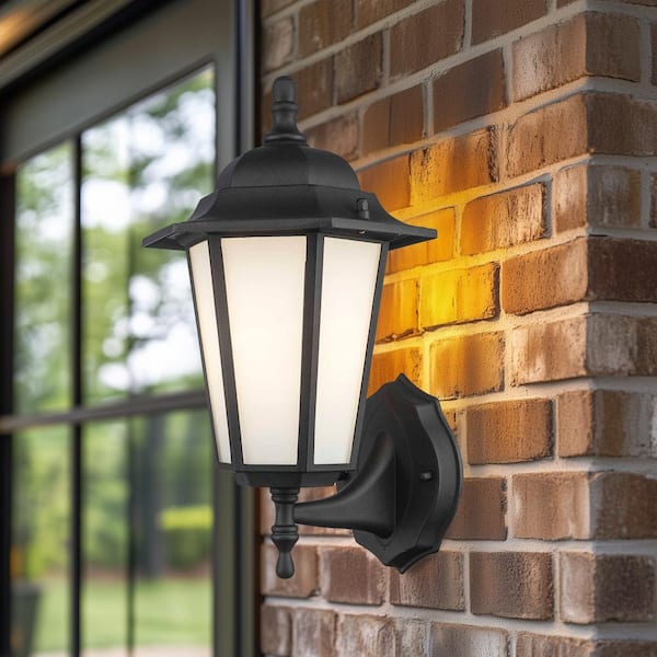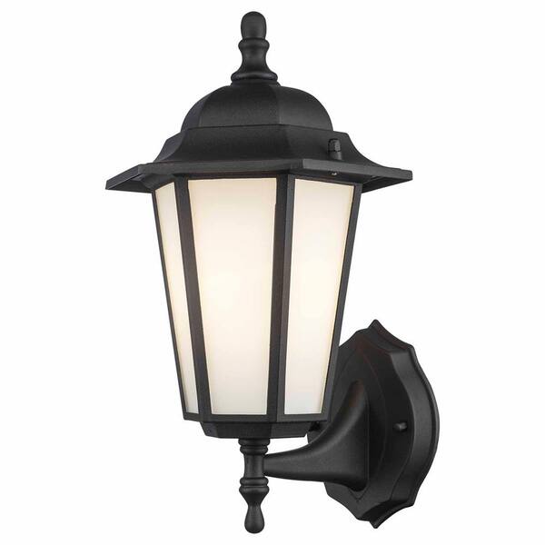 Alexander II 13 in. 1-Light Black Outdoor Hardwired Wall Coach Sconce with No Bulbs Included and Frosted Glass