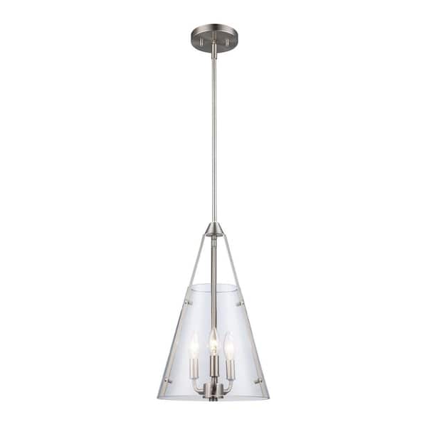 Alivia 11 in. 3-Light Brushed Nickel Pendant Light Fixture with Clear Glass Shade