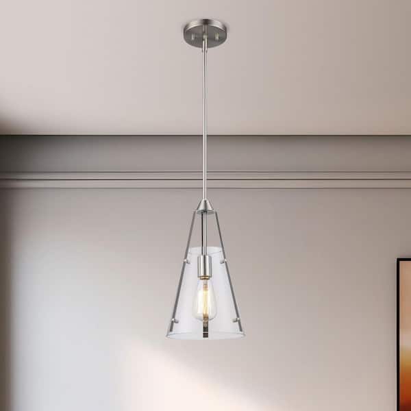 Alivia 8 in. 1-Light Brushed Nickel Pendant Light Fixture with Clear Glass Shade