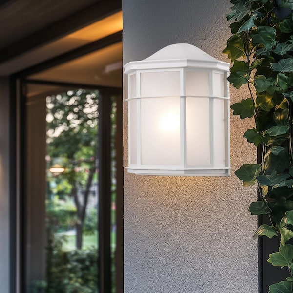 Andrews 1-Light White Outdoor Pocket Wall Light Fixture with Frosted Acrylic Shade