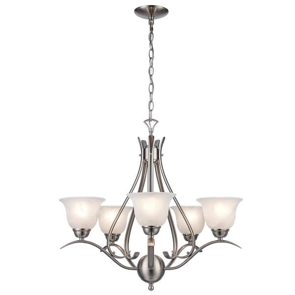 Aspen 5-Light Brushed Nickel Chandelier Light Fixture with Marbleized Glass Shades