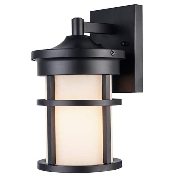 Avalon II 11 in. 1-Light Black Outdoor Hardwired Wall Lantern Sconce with No Bulbs Included and Frosted Glass