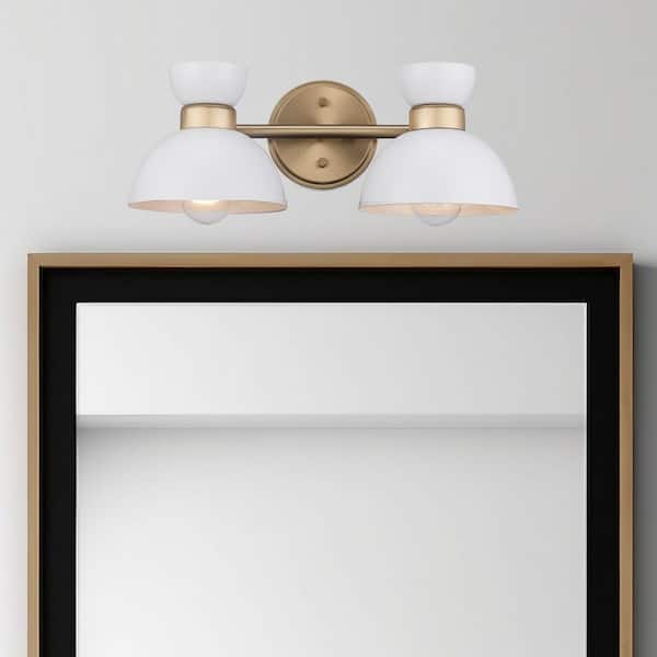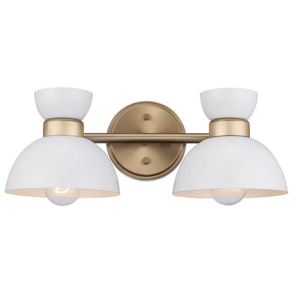 Azaria 16 in. 2-Light White and Gold Bathroom Vanity Light Fixture with Metal Dome Shades