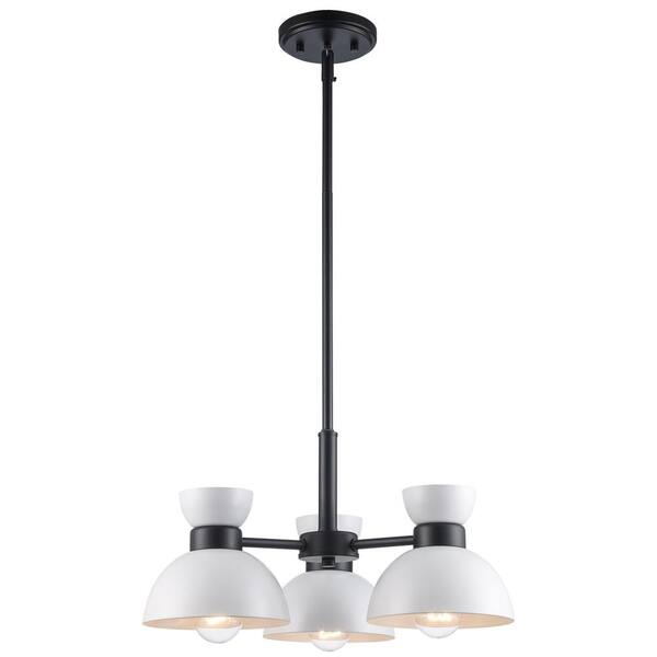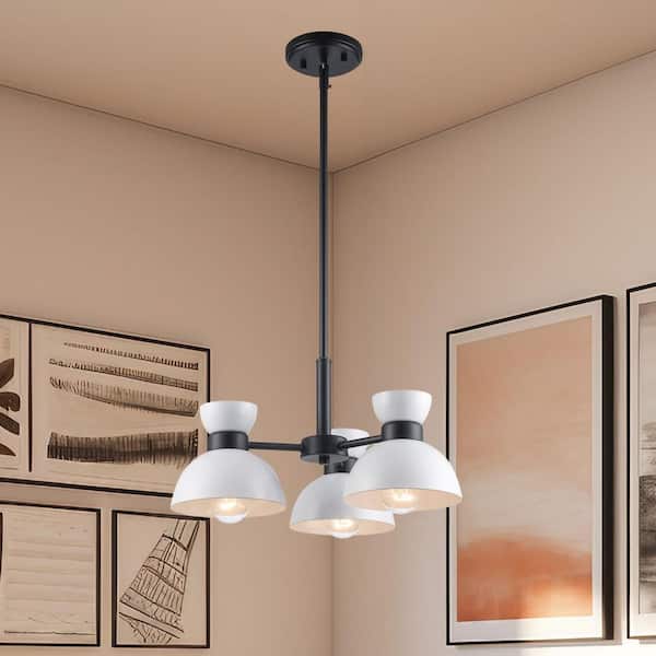 Azaria 3-Light White and Black Chandelier Light Fixture with Metal Dome Shades