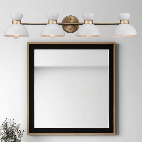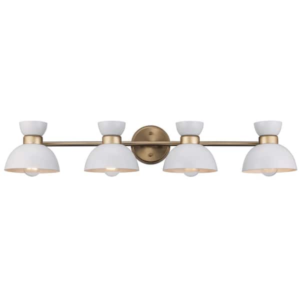 Azaria 35 in. 4-Light White and Gold Bathroom Vanity Light Fixture with Metal Dome Shades